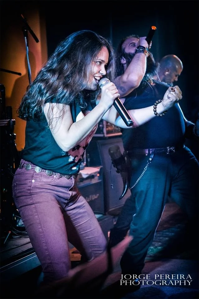 Image: Sara Freitas singing as a guest, during a concert of the band Gods of War.