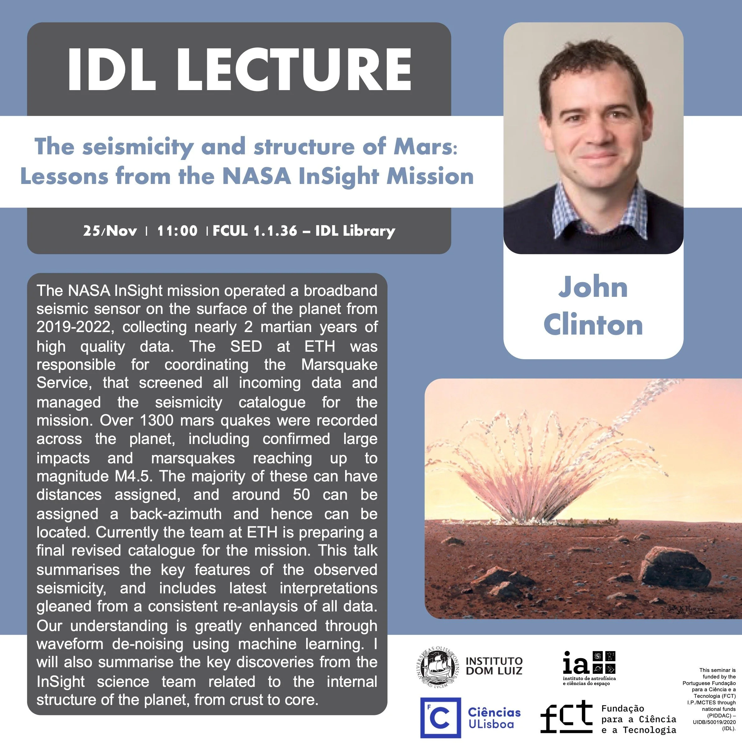 IDL lecture: "The seismicity and structure of Mars: Lessons from the NASA InSight Mission “ Lecturer: John Clinton, ETHZ Emanuel DutraNovember 19, 2024 Facebook0 Twitter LinkedIn0 Reddit Tumblr Pinterest0 0 Likes