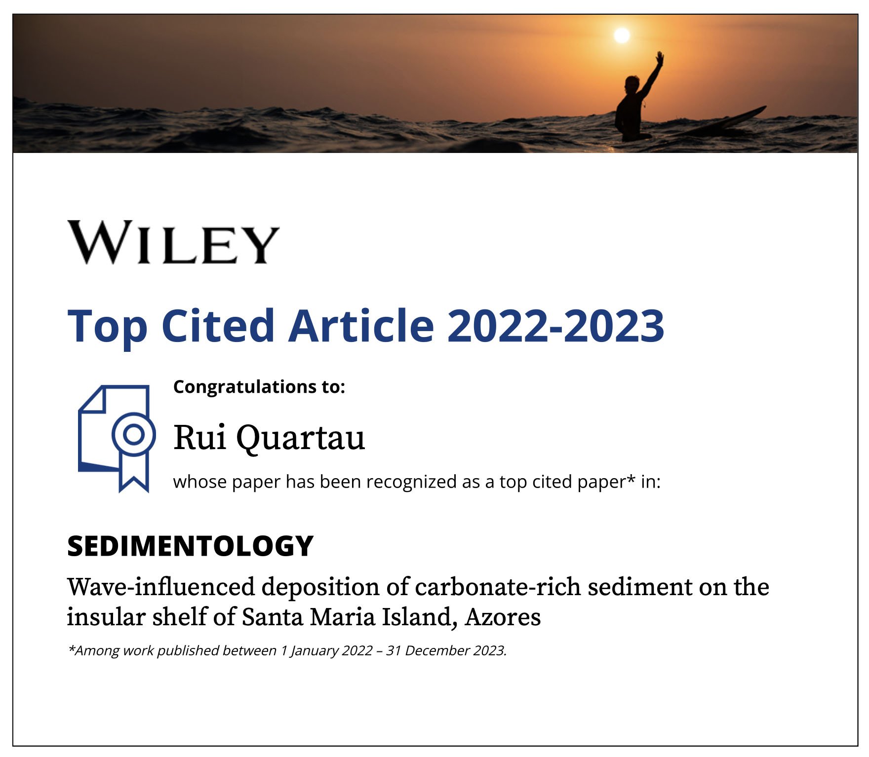 In the scope of the PLATMAR project (PTDC/GEO-GEO/0051/2014), funded by the Portuguese Foundation for Science and Technology and whose Principal Investigator was Rui Quartau (researcher at Instituto Hidrográfico and Instituto Dom Luiz), the sediments of the Santa Maria island shelf were characterised in terms of their nature and grain size, which provided a unique opportunity to test how sediment was transported on the Santa Maria island shelf. This work entitled "Wave-influenced deposition of carbonate-rich sediment on the insular shelf of Santa Maria Island, Azores" was published in 2022 in the journal Sedimentology and was recently considered one of the most cited papers in 2022-2023 by the journal. It resulted from the work of an international multidisciplinary team, including the Instituto Hidrográfico, Instituto Dom Luiz, the University of the Azores, the University of Manchester (UK), the Dunarea University of Jos de Galati (Romania) and the South China Sea Institute of Oceanology. The first author of this work (Zhongwei Zhao) was a PhD student of Rui Quartau.